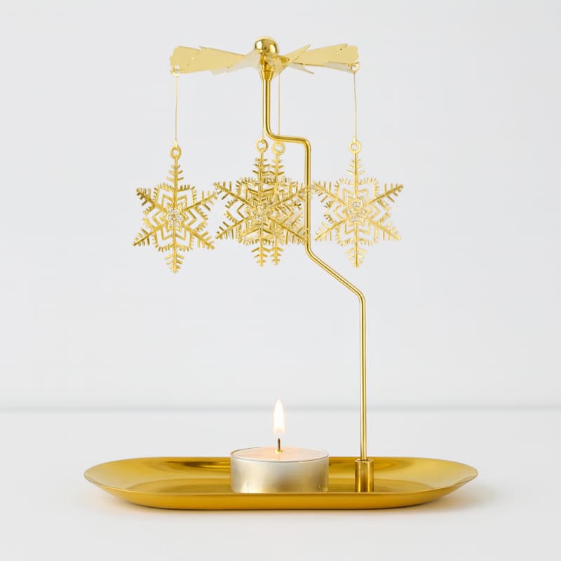 Ozdoba Świąteczna VIRELAElegancki, złoty świecznik – karuzela to wyjątkowa dekoracja świąteczna.Wykonany z metalu, delikatnie obraca się pod wpływem ciepła świecy, tworząc nastrojowy efekt ruchu i blasku. Doskonale sprawdzi się jako ozdoba stołu, komody czy prezent świąteczny. Materiał:Produkt wykonany z metalu Wymiary:Wysokość: 20cmSzerokość: 18cm Wymiary pudełka:18,5 x 10 x 3,5 cm Waga: 175 g