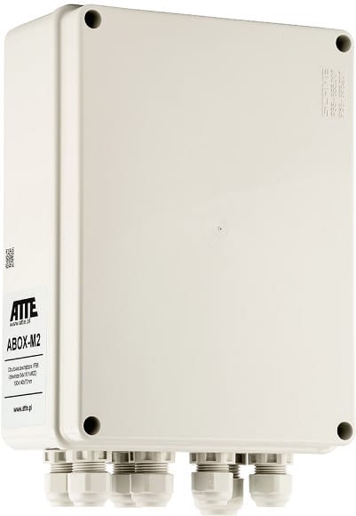 Zestaw IP-5-11-M2 składa się z modułu switcha XPOE-6-11-OF oraz zasilacza impulsowego APS-90-480-OF zamkniętych w obudowie zewnętrznej ABOX-M2 o klasie szczelności IP56