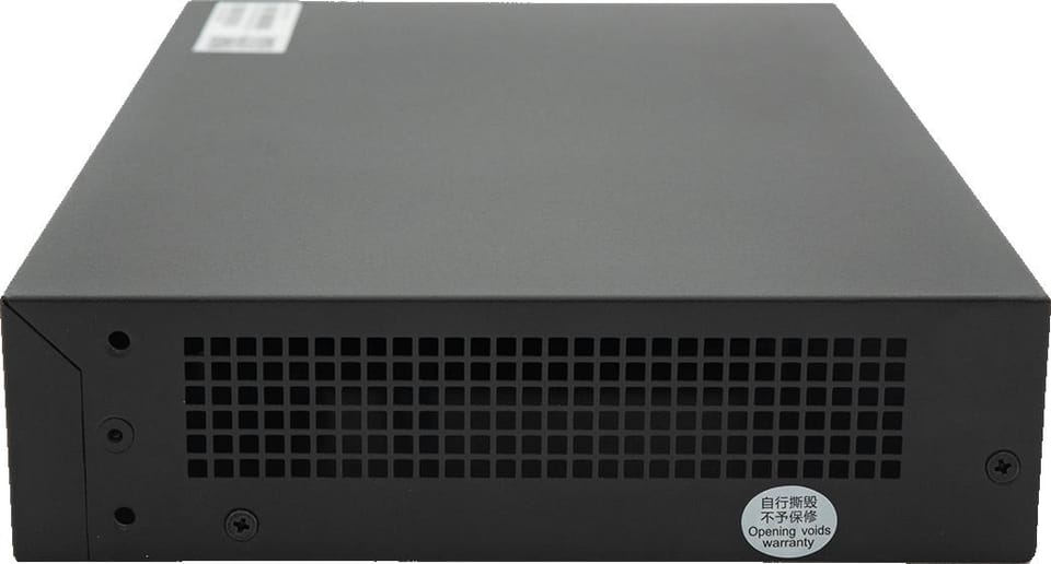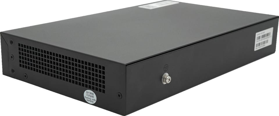 - 8 portów PoE+ 802.3at, pozwalających na przesyłanie danych i zasilania po jednym kablu Ethernet.