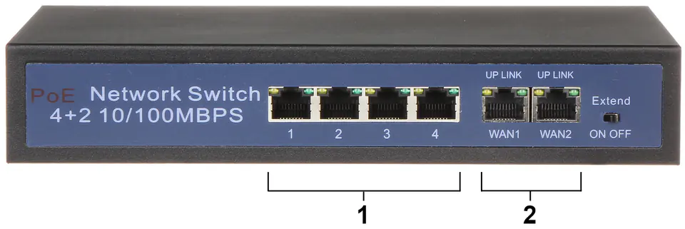 Uwaga!Włączenie funkcji Extend powoduje zwiększenie zasięgu PoE do 200m oraz zmniejszenie prędkości transmisji do 10 Mb/sZielona dioda przy gnieździe WAN1 sygnalizuje podłączenie urządzenia do zasilania