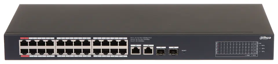Dzięki niezawodności i zapewnieniu wysokiej jakości transmisji, 24-portowy przełącznik PoE CS4228-24GT-375 10/100/1000 Mb/s typu desktop stanowi idealne rozwiązanie do rozbudowy domowej lub biurowej sieci24 porty obsługują funkcję Power over Ethernet (PoE)
