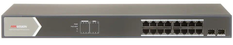 | Porty lan: | 16 x RJ45 1000BASE-TX ( 16 x PoE (802.3af/at) ), 2 x port SFP - Uplink |