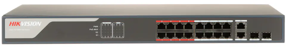 | Szybkość transmisji: | 10 / 100 Mb/s - 16 Porty LAN & PoE 10 / 100 / 1000 Mb/s - 2 Porty Uplink 1000 Mb/s - 2 Porty SFP |