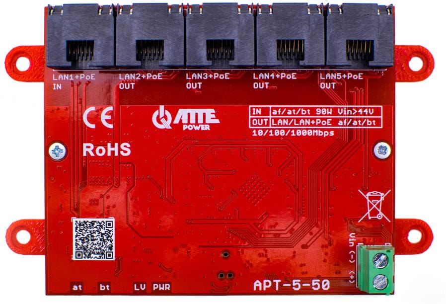 Port LAN 1 pełni funkcję portu Uplink oraz wejścia zasilania POE 802.3af/at/btPorty LAN 2 ... LAN 5 pozwalają na zasilenie przyłączonych urządzeń za pośrednictwem POE 802.3af/at/bt