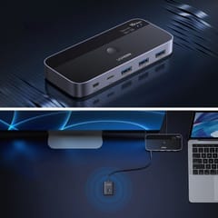 UGREEN CM691 współpracuje z systemami Windows, macOS, Linux i Chrome OS. Ponadto obsługuje wiele różnych urządzeń USB, takich jak klawiatury, myszy, drukarki, mikrofony, kamery, czytniki kart, dyski zewnętrzne i słuchawki. Do podłączenia komputera lub laptopa służą dwa porty USB-C.