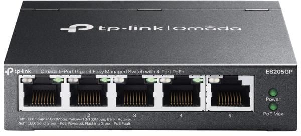 Przełącznik Omada Easy Managed ES205GP to nowoczesne i funkcjonalne urządzenie sieciowe wyposażone w 5 portów RJ45 o prędkości 10/100/1000 Mb/s, w tym 4 porty zgodne z technologią PoE+ (802.3at/af). Dzięki temu, jest idealnym rozwiązaniem do zasilania i zarządzania różnorodnymi urządzeniami sieciowymi, takimi jak kamery IP, telefony IP czy punkty dostępowe Wi-Fi.