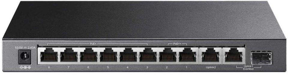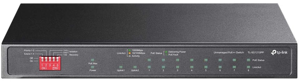 TP-Link TL-SG1210PP oferuje 9 portów RJ45 10/100/1000 Mb/s oraz 1 port Combo SFP/RJ45 1000 Mb/s, zapewniając wszechstronną łączność. Wyposażony w 2 porty PoE++ oraz 6 portów PoE+ pozwala na jednoczesne przesyłanie danych i zasilanie urządzeń poprzez jeden kabel Ethernet, zgodnie ze standardami IEEE 802.3af/at/bt. Obsługuje zasilanie do 30 W na każdym porcie PoE+ i do 60 W na porcie PoE++, z łączną mocą do 123 W. Funkcje QoS (802.1p/DSCP) zapewniają płynność działania aplikacji wrażliwych na opóźnienia, a tryby Extend, Priority i Isolation zwiększają wydajność i bezpieczeństwo. Plug and Play oraz PoE Auto Recovery zapewniają prostotę obsługi i stabilność systemu, umożliwiając automatyczne restartowanie niedziałających urządzeń.