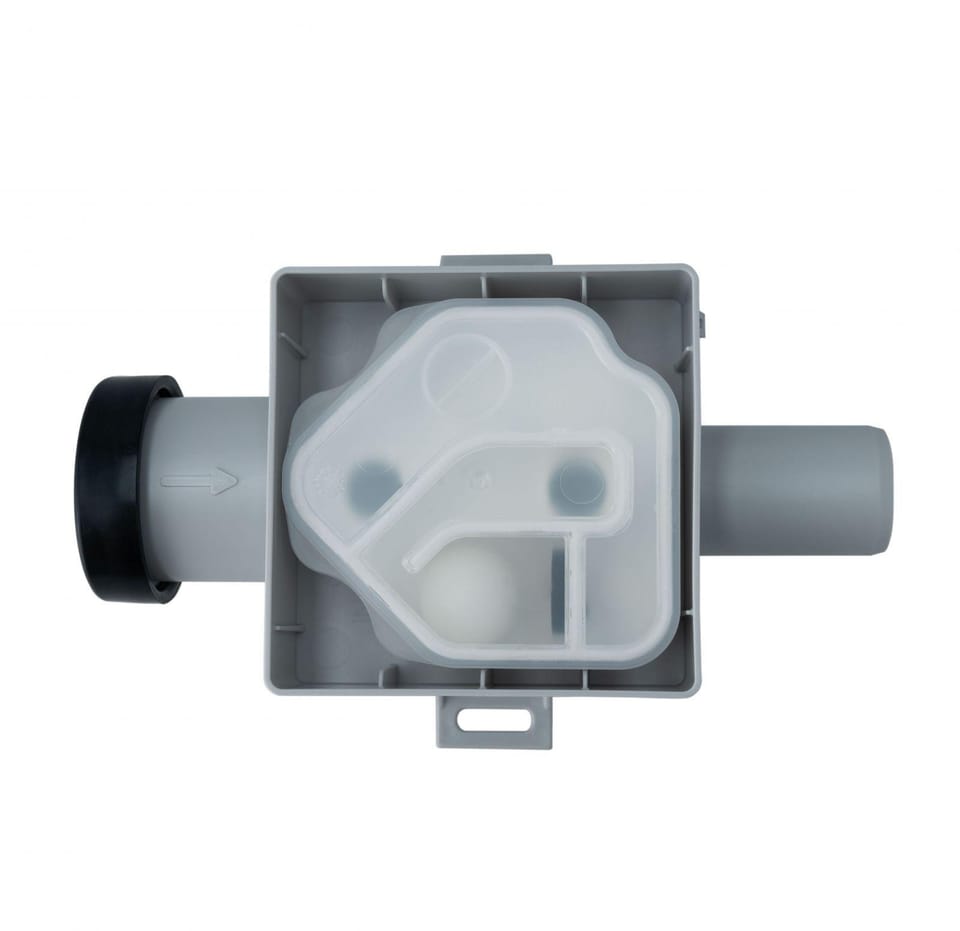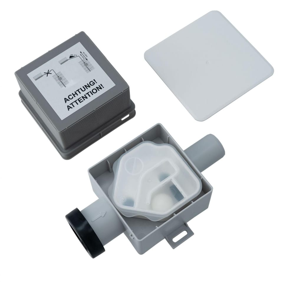 Podtynkowy syfon z blokadą antyzapachową stosowany do odprowadzenia skroplin do kanalizacji sanitarnej. Wyjmowana kaseta z kulką zapobiega wydzielaniu się nieprzyjemnych zapachów z kanalizacji. Możliwość przyłączenia przewodów o wym. zew. Ø 20 - 32 mm i minimalnej średnicy wewnętrznej Ø 18 mm. Ze względu na grubość ścian regulowana obudowa montażowa. Minimalna głębokość zabudowy 60 mm.