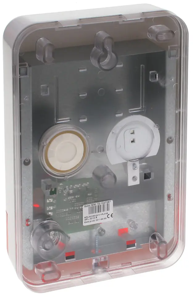 Zewnętrzny sygnalizator optyczno-akustyczny SPL-2010-R funkcję sygnalizacji realizuje w dwojaki sposób: optycznie (miganiem lampy koloru czerwonego) i akustycznie (modulowanym sygnałem dźwiękowym o dużej głośności)
