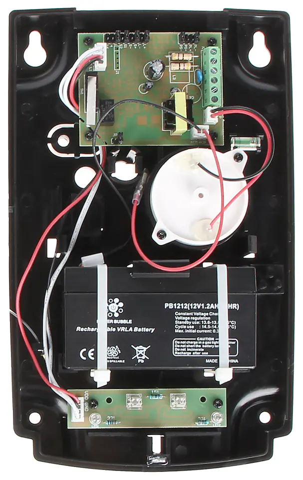 Obudowa zewnętrzna sygnalizatora wykonana jest z wysokoudarowego poliwęglanu, dzięki czemu charakteryzuje się bardzo dużą wytrzymałością mechaniczną i gwarantuje estetyczny wygląd sygnalizatora nawet po wielu latach eksploatacjiKonstrukcja sygnalizatora zapewnia wysoki stopień zabezpieczenia antysabotażowego (przed otwarciem i przed oderwaniem od podłoża)Urządzenie posiada wewnętrzny akumulator o pojemności 1.3Ah