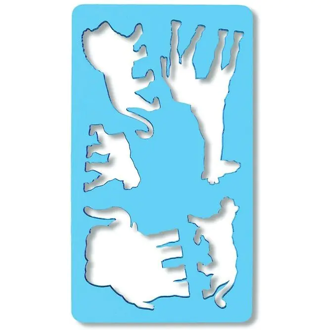 Szablon dla dzieci wykonany z kolorowego, transparentnego tworzywa sztucznego.