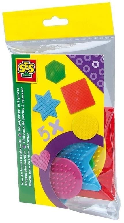 Specjalne podstawki z wypustkami do ułożenia mozaiki z koralików w 5 kształtach: serce, gwiazda, kwadrat, koło i sześciokąt. Po ułożeniu koralików na szablonie, należy przeprasować je przez pergamin aby otrzymać trwały obrazek.