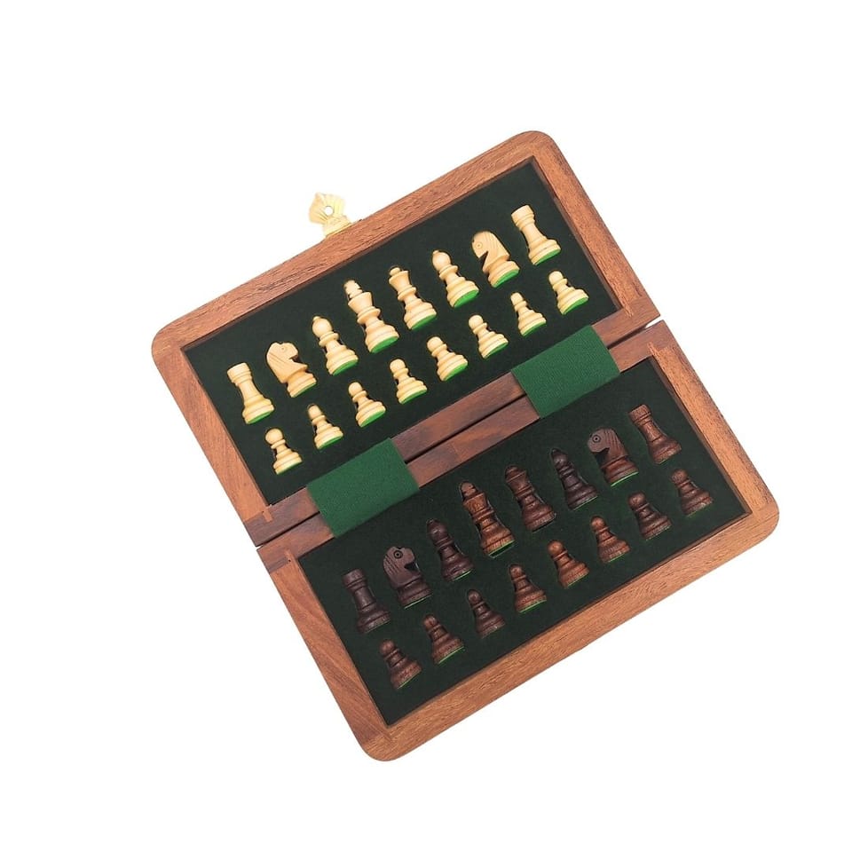 Szachy drewniane magnetyczne - gra strategiczna - G201Z Szachy drewniane magnetyczne G201Z to doskonały wybór dla tych, którzy chcą ćwiczyć umiejętności analityczne i strategiczne zarówno w domu jak i w podróży. · Wymiary rozłożonej szachownicy: 17 x 17 cm · Szachownica składana · Szachownica drewniana: akacja · Bierki wykonane z drewna · Bierki podklejone materiałem Uwaga! Niniejszy produkt nie jest zabawką. Produkt przeznaczony dla osób powyżej 14 roku życia.
