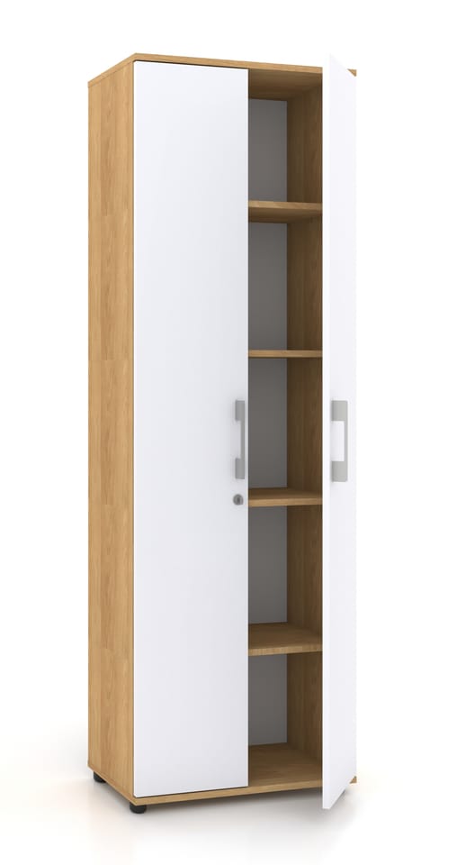 Szafa biurowa G 60 2d HIKORA z białym drzwiami, zamykana na klucz - zamek jest w zestawie. Wymiary: