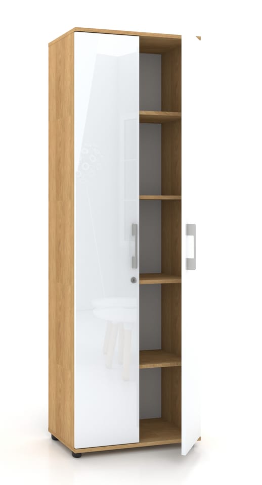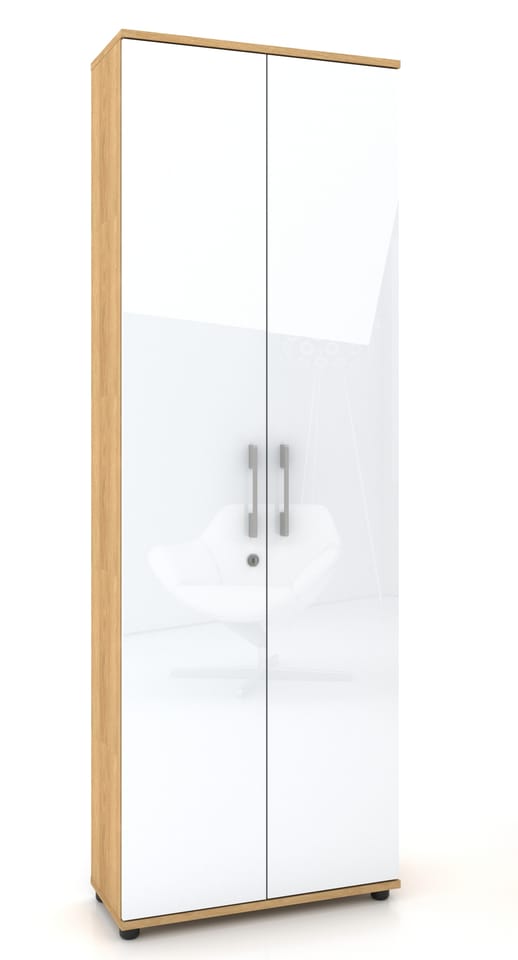 Szafa biurowa G 80 2d HIKORA z białym drzwiami, zamykana na klucz - zamek jest w zestawie. Wymiary: