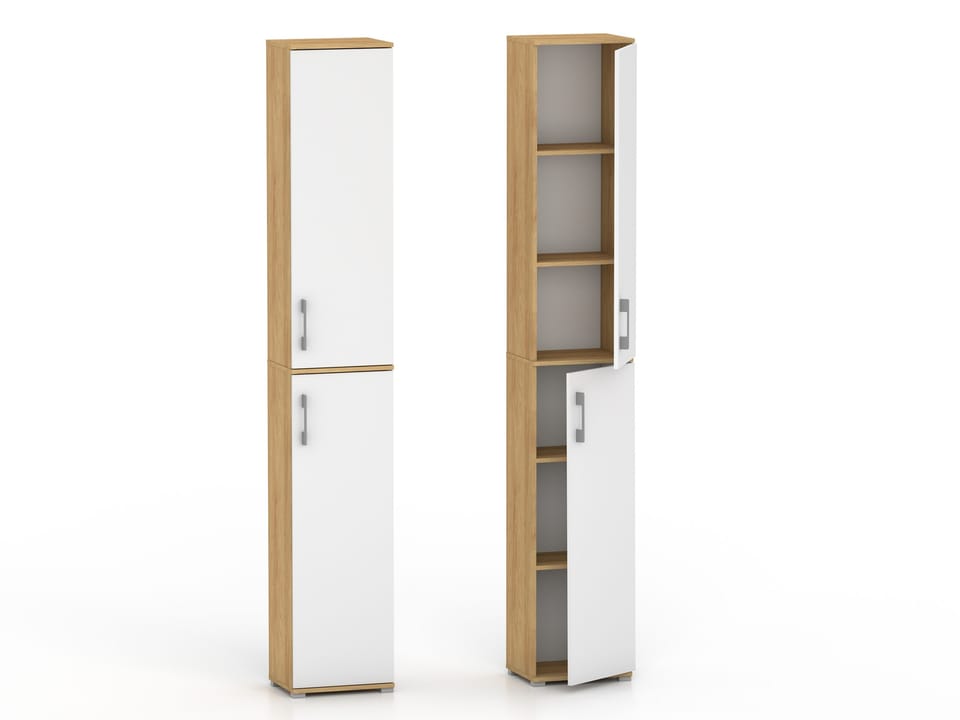 Szafa biurowa Pola 215 - 2D 30 cm Hikora naturalna z białymi frontami