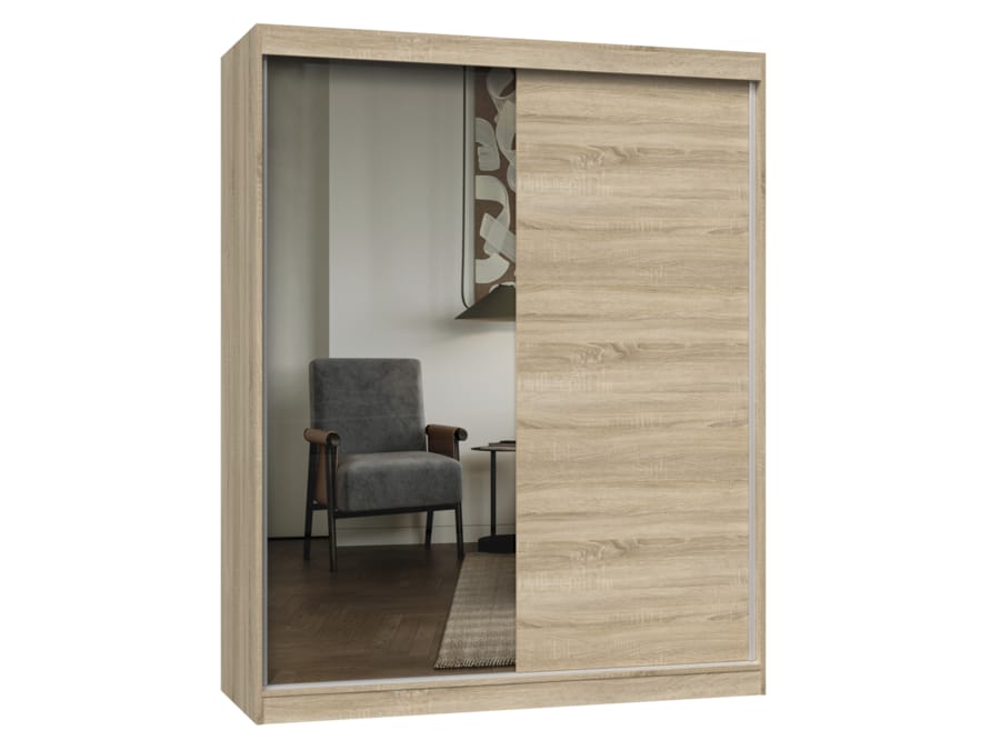 Szafa IGA 160 z drzwiami przesuwnymi i lustrem to idealne rozwiązanie do sypialni, biura lub garderoby. Dzięki nowoczesnej kolorystyce i minimalistycznej formie doskonale komponuje się z różnymi aranżacjami wnętrz.