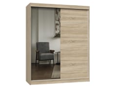Drzwi przesuwne zapewniają wygodne użytkowanie, a duże lustro na froncie optycznie powiększa wnętrze i nadaje mu nowoczesnego charakteru.