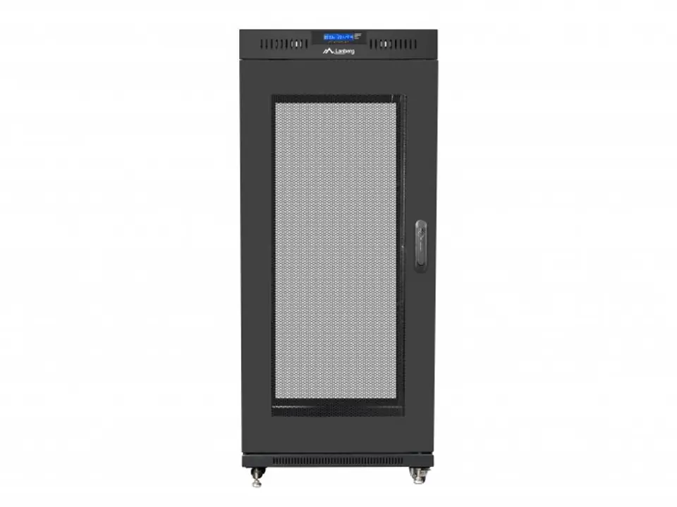 Szafa stojąca jednosekcyjna Lanberg FF01-8822-23BL to rozwiązanie przeznaczone do budowy sieci, montażu okablowania oraz sprzętu w rozmiarze 19” o maksymalnym łącznym udźwigu do 800 kg. Może być stosowana w centrach danych, które wymagają dużej ilości miejsca w szafach na urządzenia. Szafa z powodzeniem spełni swoją rolę w dużych, rozbudowanych sieciach i serwerowniach, zarówno w małych, średnich jak i dużych firmach oraz korporacjach. Sprawdzi się również w instalacjach niskoprądowych takich jak sieci telewizji kablowych, systemy alarmowe, przeciwpożarowe, kontroli dostępu oraz systemy monitoringu CCTV i IP. Konstrukcja wykonana jest przy użyciu wysokiej jakości stali walcowanej, charakteryzuje się znakomitym designem i jakością wykonania. Szafa umożliwia pełną regulację głębokości pionowych szyn montażowych. Wyposażona jest w przednie drzwi ze szkła hartowanego z zamkiem, z możliwością montażu prawo lub lewo stronnego. Posiada zdejmowane boczne panele (z zamkami w zestawie) i tylne solidne stalowe drzwi z zamkiem. Istnieje możliwość wprowadzenia okablowania poprzez zamykany górny i dolny panel (z zaślepkami w zestawie). Szafa posiada zamontowany na przodzie wyświetlacz LCD, wyświetlającym podstawowe informacje (np. temperaturę wewnątrz szafy, obecny czas oraz aktualny status pracy wentylatorów) o statusie działania urządzenia.W zestawie znajduje się panel wentylacyjny z 4 wentylatorami 230V. Dodatkowo w komplecie załączone są akcesoria do mocowania szyn nośnych, śruby M6 oraz zaślepki paneli wejściowych, a dzięki konstrukcji do samodzielnego montażu (flat pack), całość znajduje się w 3 płaskich opakowaniach co ułatwia transport.Cechy:- Producent: Lanberg,- Kod producenta: FF01-8822-23BL,- Typ szafy: Stojąca,- Kolor: Czarny RAL9004,- Wysokość: 22U,- Wymiary szafy (S x G x W): 800x800x1216 mm,- Wysokość (górny panel - dolny panel): 1130 mm,- Wysokość (górny panel - podłoże): 1203 mm,- Wysokość (górny panel - podłoże uwzględniając śruby): 1209 mm,- Wyświetlacz LCD: Tak,- Panel podłogowy: 4 kółka z hamulcem + regulowane nóżki,- Wewnętrzna szerokość rozstawu między szynami rackowymi: 450 mm,- Szerokość rozstawu między otworami szyn rackowych: 465 mm,- Zewnętrzna szerokość między szynami rackowymi: 500 mm,- Ładowność: Do 800 KG,- Klasa szczelności: IP20,- Panel wentylacyjny: w zestawie 4 wentylatory 230V w górnej obudowie,- Rodzaj drzwi: Przednie - Perforowane, Tylnie - Perforowane,- Zgodność ze standardami: ANSI/EIA RS-310D, IEC297-2, DIN41494; PART1 & PART7, ETSI,- Materiał wykonania: Wysokiej jakości stal walcowana, malowana proszkowo,- Grubość drzwi: 5.0 mm,- Grubość blachy: pionowe szyny montażowe - 2,00 mm; profil montażowy - 2,00 mm; reszta - 1,50 mm - 1,20 mm,- Otwory kablowe: Góra, Dół (regulowany),- W zestawie: Akcesoria do mocowania, zamek drzwi przednich i tylnych, dwa zamki paneli bocznych, 20 śrub M6, 2 pionowe organizery kabli x2.