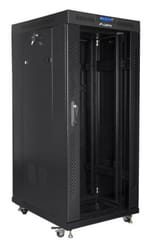 Szafa stojąca jednosekcyjna Lanberg FF01-8027-12BL to rozwiązanie przeznaczone do budowy sieci, montażu okablowania oraz sprzętu w rozmiarze 19 o maksymalnym łącznym udźwigu do 800 kg. Może być stosowana w centrach danych, które wymagają dużej ilości miejsca w szafach na urządzenia. Szafa z powodzeniem spełni swoją rolę w dużych, rozbudowanych sieciach i serwerowniach, zarówno w małych, średnich jak i dużych firmach oraz korporacjach. Sprawdzi się również w instalacjach niskoprądowych takich jak sieci telewizji kablowych, systemy alarmowe, przeciwpożarowe, kontroli dostępu oraz systemy monitoringu CCTV i IP. Konstrukcja wykonana jest przy użyciu wysokiej jakości stali walcowanej, charakteryzuje się znakomitym designem i jakością wykonania.