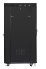 Szafa umożliwia pełną regulację głębokości pionowych szyn montażowych. Wyposażona jest w przednie drzwi ze szkła hartowanego z zamkiem, z możliwością montażu prawo lub lewo stronnego. Posiada zdejmowane boczne panele (z zamkami w zestawie) i tylne solidne stalowe drzwi z zamkiem. Istnieje możliwość wprowadzenia okablowania poprzez zamykany górny i dolny panel (z zaślepkami w zestawie). Szafa posiada zamontowany na przodzie wyświetlacz LCD, wyświetlającym podstawowe informacje (np. temperaturę wewnątrz szafy, obecny czas oraz aktualny status pracy wentylatorów) o statusie działania urządzenia.
