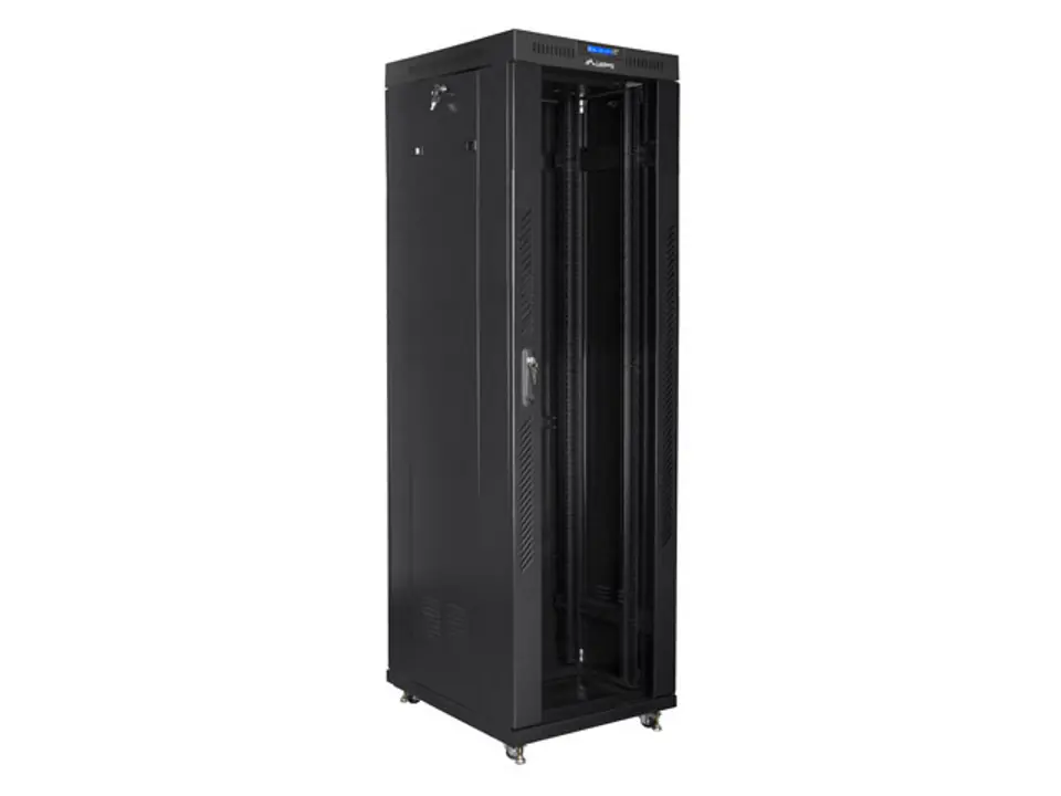 Szafa stojąca jednosekcyjna Lanberg FF01-6842-12BL to rozwiązanie przeznaczone do budowy sieci, montażu okablowania oraz sprzętu w rozmiarze 19 o maksymalnym łącznym udźwigu do 800 kg.