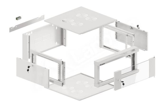 Wyposażony został w przeszklone drzwi przednie wyposażone w szybę hartowaną oraz zatrzaskowe osłony boczne w całości stalowe. Produkt przeznaczony jest tylko do zastosowania wewnątrz pomieszczeń.