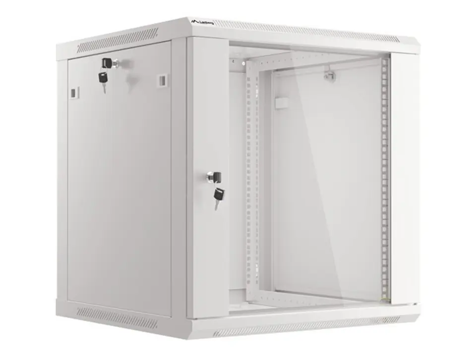 Szafa wisząca jednosekcyjna Lanberg WF01-6612-10S to rozwiązanie przeznaczone do budowy sieci, montażu okablowania oraz sprzętu w rozmiarze 19 o maksymalnym łącznym udźwigu do 60 kg. Może być stosowana w sieciach i serwerowniach zarówno w małych, jak i średnich firmach. Sprawdzi się również w instalacjach niskoprądowych takich jak sieci telewizji kablowych, systemy alarmowe, przeciwpożarowe, kontroli dostępu oraz systemy monitoringu CCTV i IP. Dzięki odpowiedniej konstrukcji, szafa umożliwia łatwy, samodzielny montaż. Charakteryzuje się szczelnością IP20, otwieranymi przednimi drzwiami z możliwością obrotu do 180°, wyposażonymi w zamek, zdejmowanymi bocznymi panelami (z zamkami w zestawie). Szafa posiada możliwość wprowadzenia okablowania poprzez górny i dolny panel. Całość wykonana jest z wysokiej jakości stali walcowanej, a dzięki konstrukcji do samodzielnego montażu (flat pack) znajduje się w płaskim opakowaniu co ułatwia transport. Dodatkowo w przesyłce załączone są dodatkowe akcesoria do mocowania szyn nośnych, śruby M6 oraz zaślepki paneli wejściowych.