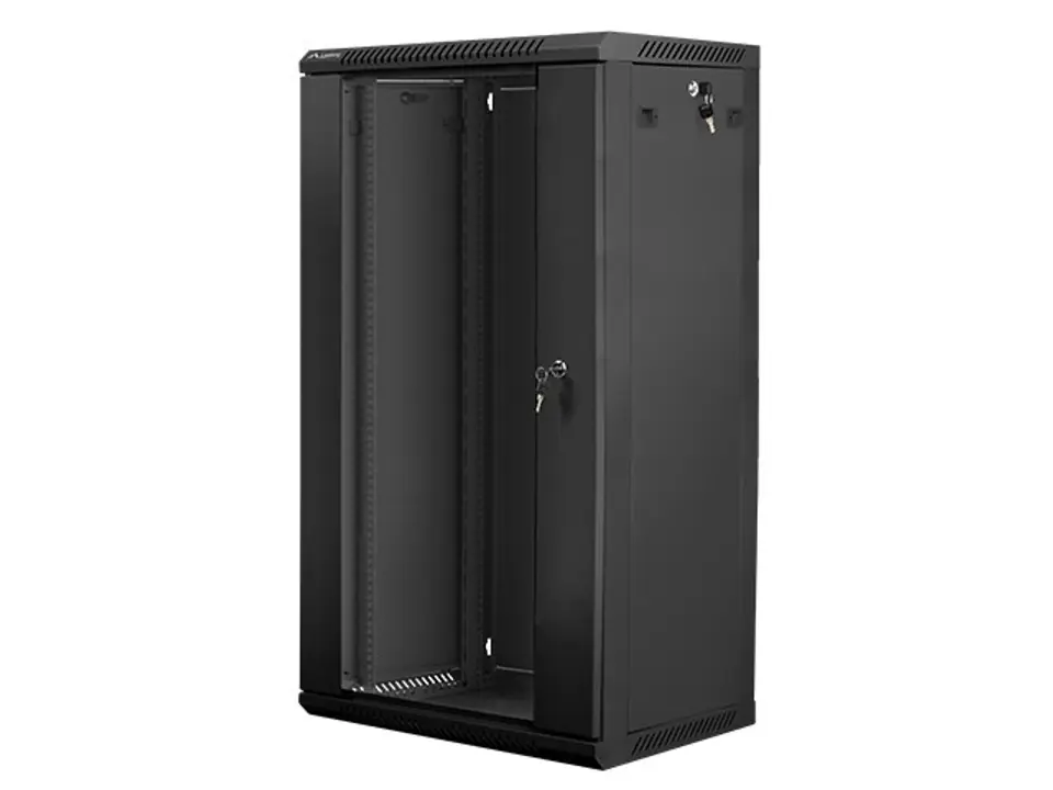 Szafa instalacyjna wisząca 19'' 22U 600X450mm czarna drzwi szklane