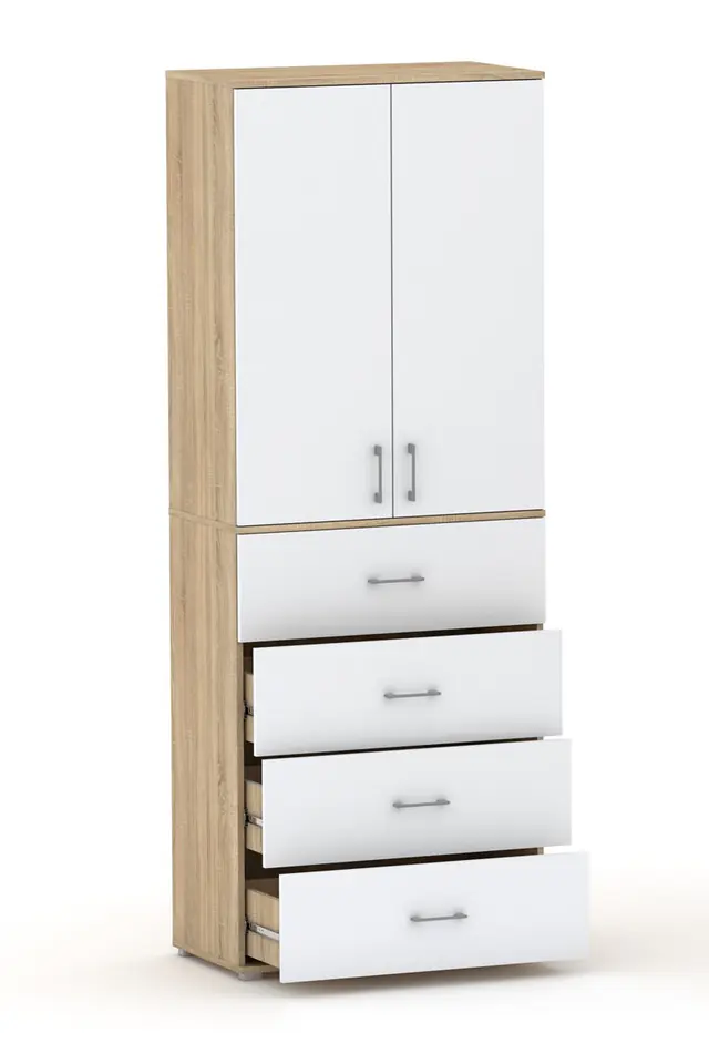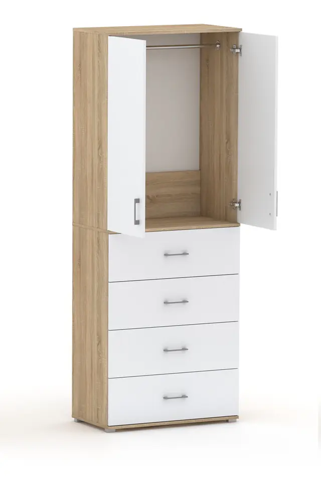 Szafa na ubrania z drążkiem Pola 215 - 4 szuflady 60 / 70 / 80 cm Da Sonoma / biala