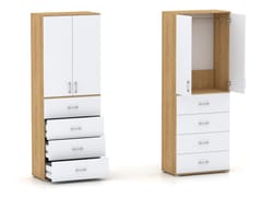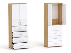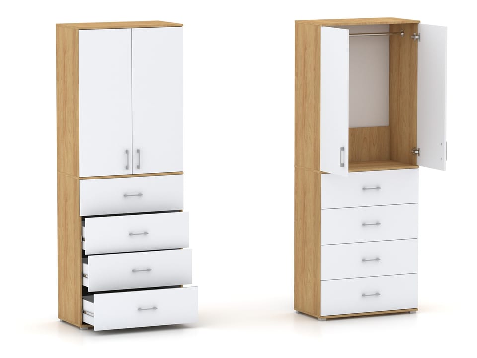 Szafa na ubrania z drążkiem Pola 215 - 4 szuflady 60 / 70 / 80 cm Hikora z białymi frontami