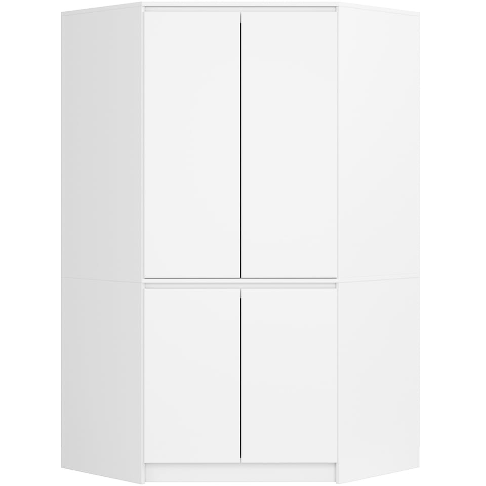 Czterodrzwiowa szafa ubraniowa wykonana została z odpornej na ścieranie płyty laminowanej. Korpus mebla utrzymany został w całości w kolorze białym. Wyposażona w drążek oraz 6 półek, dzięki czemu posiada dużo powierzchni do przechowywania.