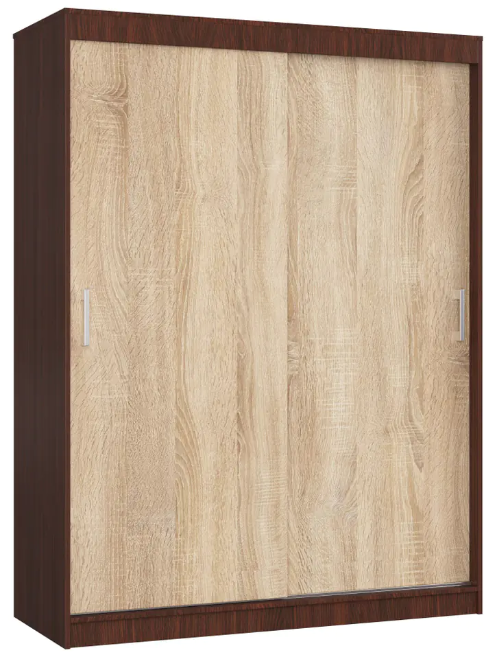 Szafy przesuwane to funkcjonalne meble, które cieszą się dużą popularnością. Można je także znaleźć w ofercie naszego sklepu. Jedną z propozycji jest szafa 150 cm CLP w dwóch kolorach: wenge i sonoma, które przywodzą na myśl drewno. Mebel jest pojemny i wygodny do użytkowania. Świetnie sprawdzi się w sypialni, pokoju dziennym czy garderobie. Jest on dedykowany dla dwóch osób.