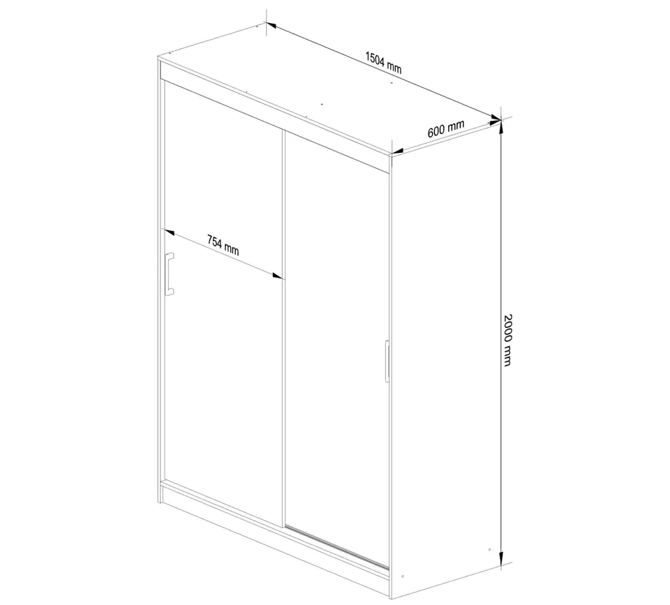 - pojemność mebla – szafa ma 200 cm wysokości, 150 cm szerokości i 60 cm głębokości;