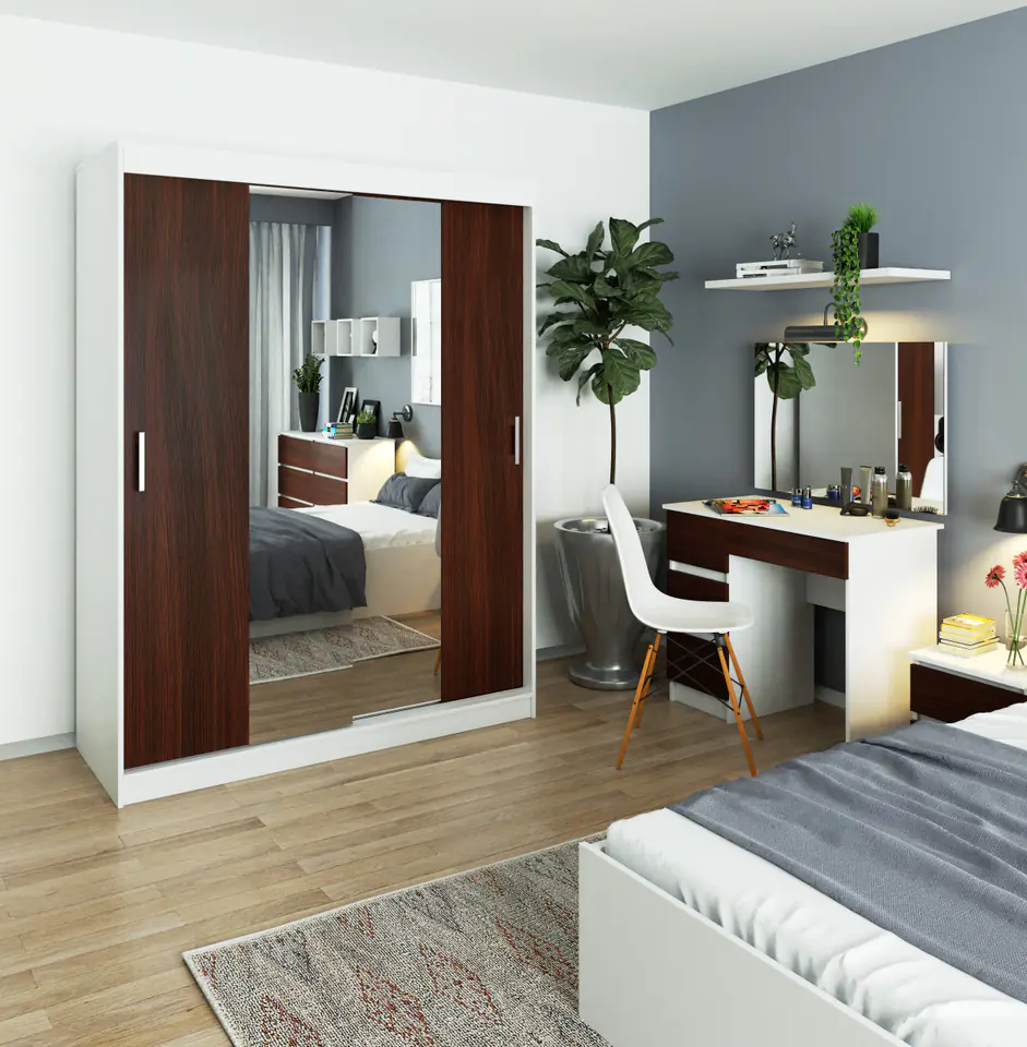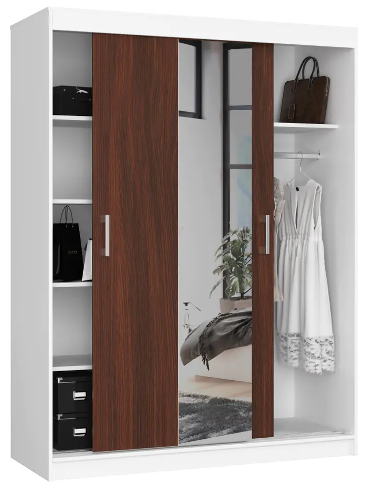 Szafa CLP MONO biała/wenge z lustrem świetnie spełni swoją rolę zarówno w garderobie, jak i sypialni, pokoju młodzieżowym, dziennym, a nawet w przedpokoju czy korytarzu. Doskonale nadaje się do przechowania ubrań i bielizny, a także okryć wierzchnich. Dzięki uniwersalnemu designowi i prostocie sprawdzi się zarówno w aranżacjach nowoczesnych, skandynawskich, jak i klasycznych.