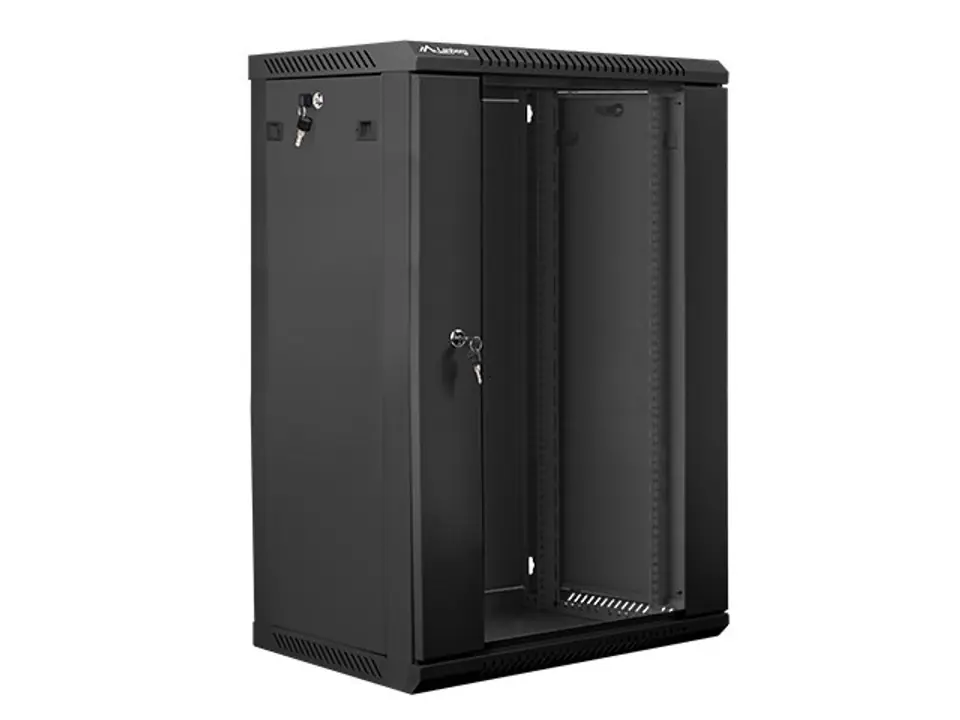Szafa rack Lanberg WF01-6418-10B 18U; 900mm / 600mm / 450 mm; wisząca; Szklane; 19''; kolor czarny
