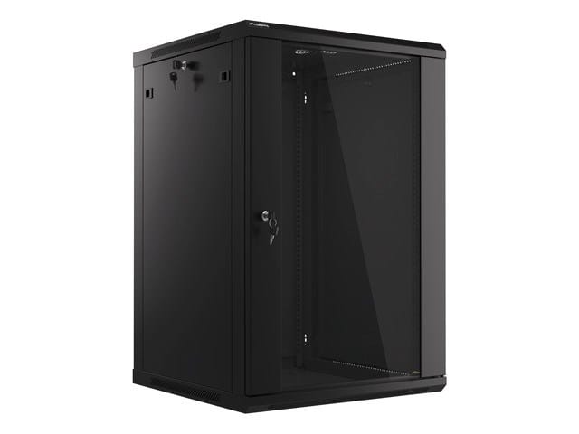 Szafa wisząca jednosekcyjna Lanberg WF01-6618-10B to rozwiązanie przeznaczone do budowy sieci, montażu okablowania oraz sprzętu w rozmiarze 19 o maksymalnym łącznym udźwigu do 60 kg. Może być stosowana w sieciach i serwerowniach zarówno w małych, jak i średnich firmach. Sprawdzi się również w instalacjach niskoprądowych takich jak sieci telewizji kablowych, systemy alarmowe, przeciwpożarowe, kontroli dostępu oraz systemy monitoringu CCTV i IP. Dzięki odpowiedniej konstrukcji, szafa umożliwia łatwy, samodzielny montaż. Charakteryzuje się szczelnością IP20, otwieranymi przednimi drzwiami z możliwością obrotu do 180°, wyposażonymi w zamek, zdejmowanymi bocznymi panelami (z zamkami w zestawie). Szafa posiada możliwość wprowadzenia okablowania poprzez górny i dolny panel. Całość wykonana jest z wysokiej jakości stali walcowanej, a dzięki konstrukcji do samodzielnego montażu (flat pack) znajduje się w płaskim opakowaniu co ułatwia transport. Dodatkowo w przesyłce załączone są dodatkowe akcesoria do mocowania szyn nośnych, śruby M6 oraz zaślepki paneli wejściowych.