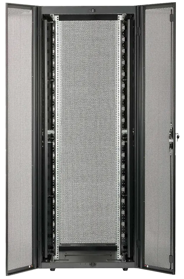Serwerowe szafy RACK posiadają perforowane drzwi przednie oraz tylne. Dzięki temu możliwe jest chłodzenie znajdujących się wewnątrz urządzeń z zewnętrznych klimatyzatorówOdstęp między parami szyn montażowych (szyny zlokalizowane są po obu stronach szafy) może być regulowany z krokiem 1 cm, co zdecydowanie ułatwia montaż serwerów i innych tego typu urządzeńSzafa posiada 4, zamykane na zamki ściany boczne