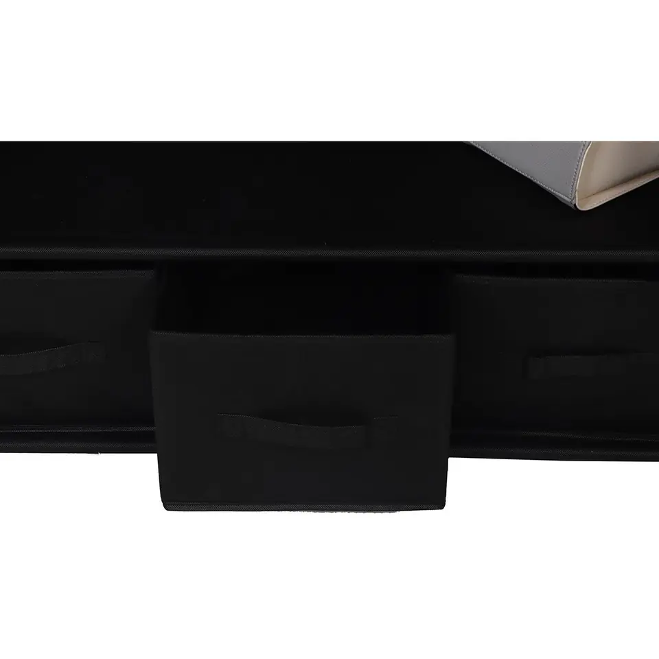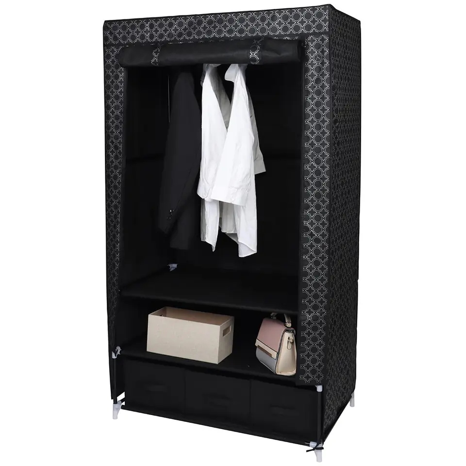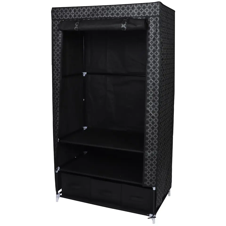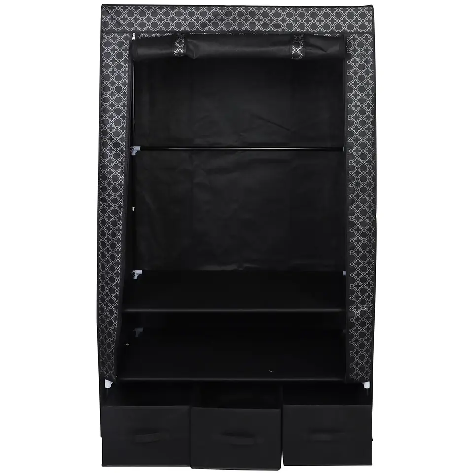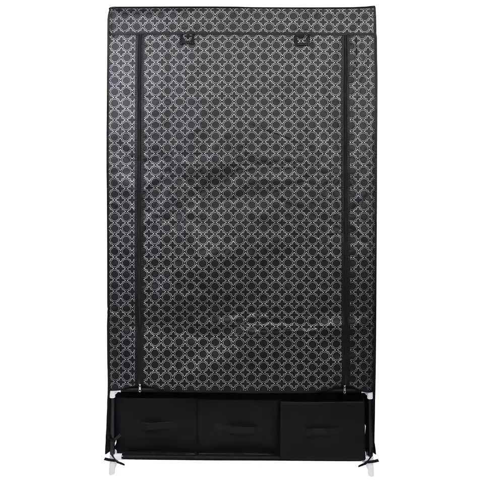 Parametry:- Wymiary zew. szafki: 88 X 50 X 160 (z nóżkami) cm (szer. x gł. x wys.)2 zamki błyskawiczne pozwalają szybko zamknąć/otworzyć garderobęIlość półek: 2 + 1 z trzema szufladkami z uchwytami + jedna z drążkiem do zawieszenia np.: koszulWymiar półki ok: 86 x 48 x 24 cm (szer. x gł.x wys.)Wymiar półki z drążkiem na wieszaki: 86 x 48 x 107 cm (szer. x gł. x wys.)Wymiar materiału półki: 77 x 50 cm (szer. x gł.)Drążek do powieszenia wieszaków: takDługość robocza drążka na wieszaki: 83 cm/średnica 1,5 cmSzufladki: tak, 3 szt.usztywniane z uchwytamiZamek blyskawiczny: tak, 2 szt. jednokierunkowy, jednostronnyWymiary szufladki (wew.): 41 x 26 x 20 cm (szer. x gł. x wys.)Maksymalne obciążenie półki: 3 kgMaksymalne obciążenie drążka na ubrania: 7 kgMateriały: pokrycie szafy włóknina 70 g, ramki malowane proszkowo - metal 16 x 0,2 mm, łączniki – PPWaga produktu: 3,300 kgKolor: czarnyWzór: ornamentMarka: Saska Garden