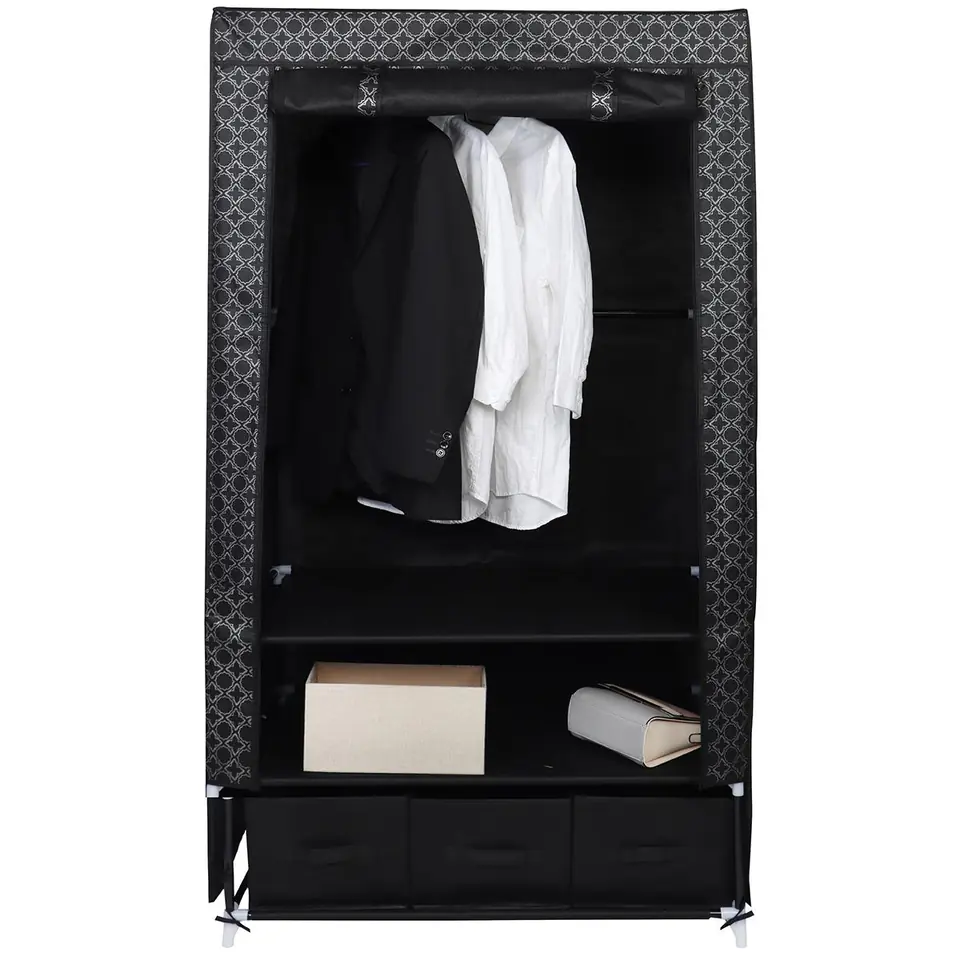 - idealne rozwiązanie do przechowywania odzieży np.: w wynajmowanym mieszkaniubezpieczna dla dzieci może służyć również jako schowek na zabawkipomocna jako tymczasowe rozwiązanie w mieszkaniu np.: po przeprowadzcemoże posłużyć do przechowywania ubrań sezonowych w pomieszczeniu gospodarczym łatwa w utrzymaniu czystości, zalegający kurz można po prostu odkurzyćmetalowy stelaż zapewni mocną i stabilną konstrukcjęzamki umieszczone na froncie szafy pozwalają na otwieranie prawej lub lewej strony bez otwierania całej szerokościpaski z rzepem zamontowane na górze szafy przytrzymają zwinięte zamknięciedołączone do zestawu szufladki pozwolą na schowanie i posegregowanie drobiazgów łatwa do przetransportowania dzięki szybkiej do montażu i demontażu konstrukcjiwzór ornamentu sprawi, że będzie nie tylko wygodnym meblem, ale też oryginalnym dodatkiem do wnętrza