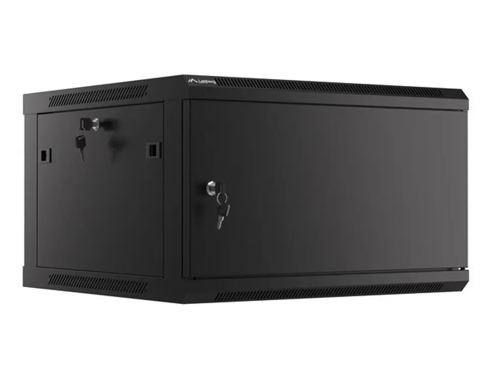 Szafa wisząca jednosekcyjna Lanberg WF01-6606-00B to rozwiązanie przeznaczone do budowy sieci, montażu okablowania oraz sprzętu w rozmiarze 19 o maksymalnym łącznym udźwigu do 60 kg. Może być stosowana w sieciach i serwerowniach zarówno w małych, jak i średnich firmach. Sprawdzi się również w instalacjach niskoprądowych takich jak sieci telewizji kablowych, systemy alarmowe, przeciwpożarowe, kontroli dostępu oraz systemy monitoringu CCTV i IP. Dzięki odpowiedniej konstrukcji, szafa umożliwia łatwy, samodzielny montaż. Charakteryzuje się szczelnością IP20, otwieranymi przednimi drzwiami z możliwością obrotu do 180°, wyposażonymi w zamek, zdejmowanymi bocznymi panelami (z zamkami w zestawie). Szafa posiada możliwość wprowadzenia okablowania poprzez górny i dolny panel. Całość wykonana jest z wysokiej jakości stali walcowanej, a dzięki konstrukcji do samodzielnego montażu (flat pack) znajduje się w płaskim opakowaniu co ułatwia transport. Dodatkowo w przesyłce załączone są dodatkowe akcesoria do mocowania szyn nośnych, śruby M6 oraz zaślepki paneli wejściowych.