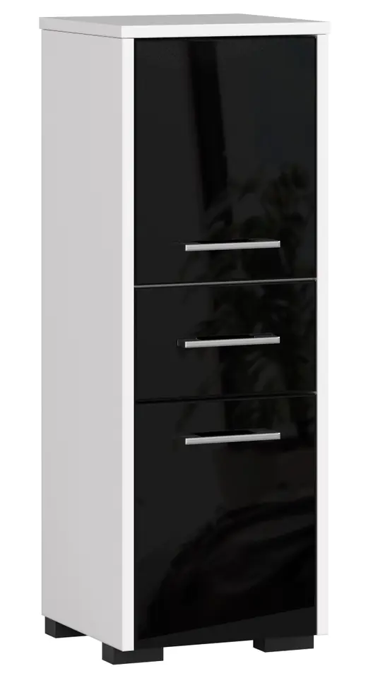 Szafka-słupek, regał łazienkowy fin 2D 1SZ (biały/czarny połysk) to doskonały wybór do powierzchni łazienkowych. Wykonany on został z materiałów, które nie będą niszczyć się pod wpływem wilgoci, przez co mebel ten posłuży nam na długi czas, sprawiając że nasza łazienka będzie elegancka i bardzo praktyczna.