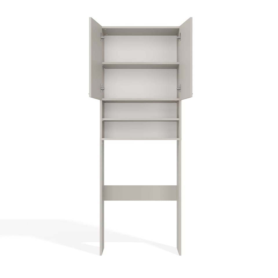 Do dyspozycji są łącznie 4 praktyczne półki, w tym 2 półki ukryte za podwójnymi, krótkimi drzwiami. Bez problemu pomieszczą ręczniki, środki czystości, detergenty czy kosmetyki.