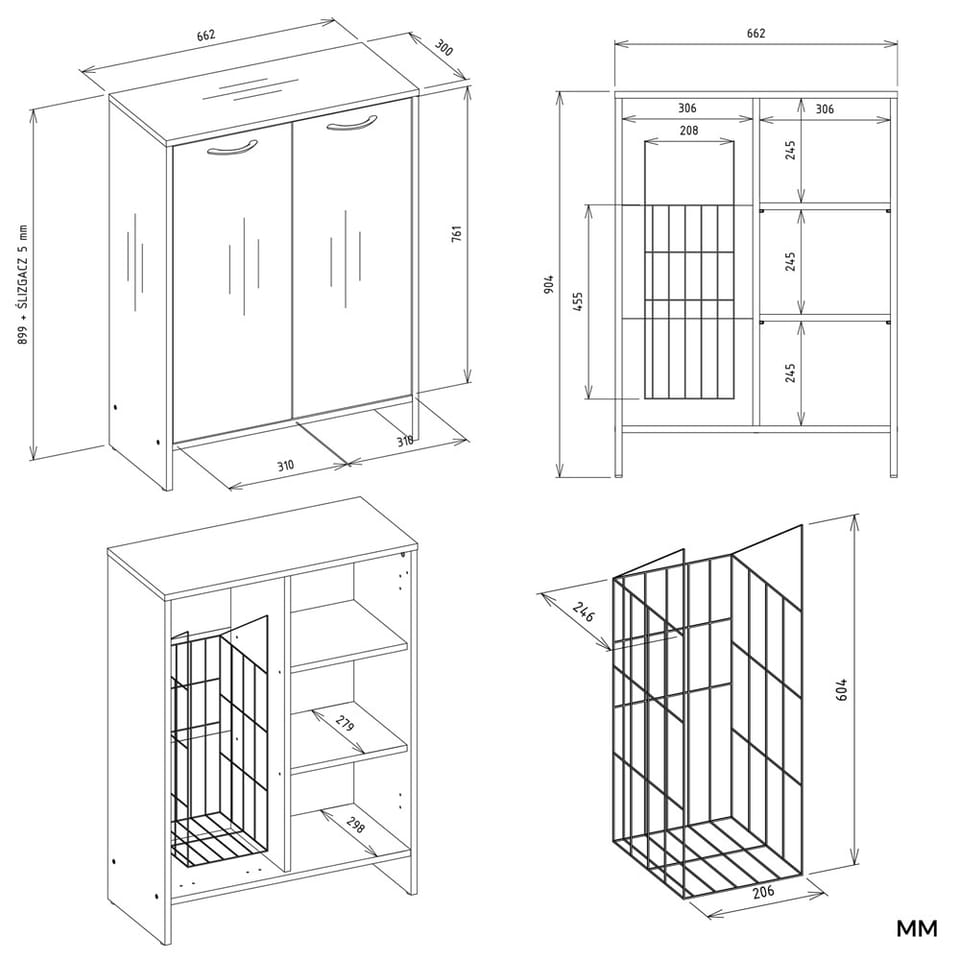 - Stabilna konstrukcja – mebel wykonany z płyty laminowanej o grubości 16 mm