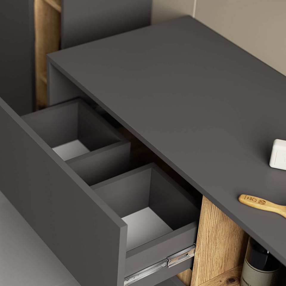 SZAFKA ŁAZIENKOWA POD UMYWALKĘ VAMI W 90 cm 2 SZUFLADY GRAFIT SZARY / DĄB ARTISAN