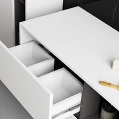 Szafka pod umywalkę nablatową VAMI W90 łączy w sobie nowoczesny design, lekką formę i dużą funkcjonalność. Dwie szuflady pozwalają wygodnie i estetycznie przechowywać artykuły higieniczne i nie tylko. Dodatkowym atutem szafki pod umywalkę nablatową VAMI W90 są dwie półki otwarte, które nadają jej atrakcyjny wygląd odpowiadający najnowszym trendom. Wymiary tego modelu to: szerokość 90 cm, wysokość 60 cm oraz głębokość 45,5 cm. Mebel jest przeznaczony do montażu na ścianie. Posiada specjalnie wyprofilowane szuflady umożliwiające zamontowanie syfonu i elementów hydraulicznych.