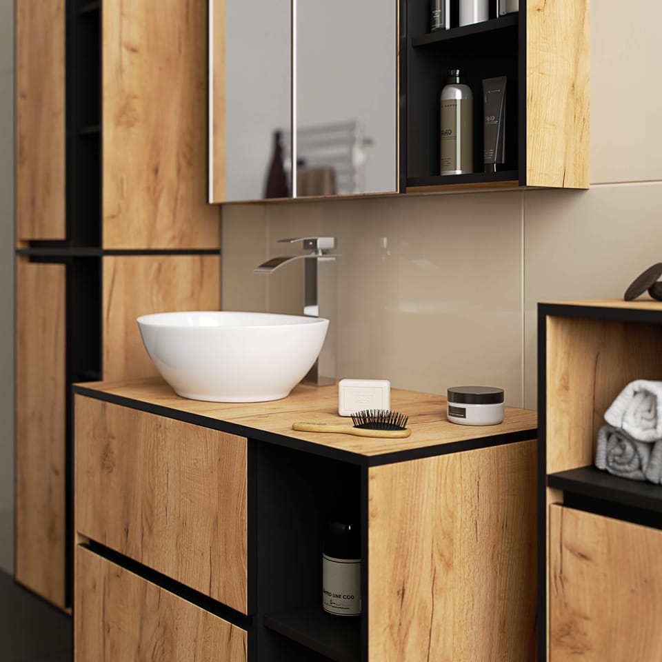 SZAFKA ŁAZIENKOWA POD UMYWALKĘ Z OTWORAMI VAMI W90 UM 2SZ 2P DĄB CRAFT / CZARNY