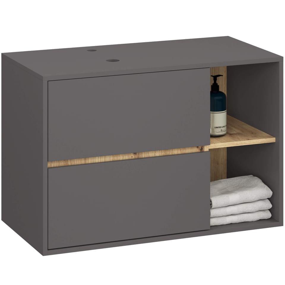 SZAFKA ŁAZIENKOWA POD UMYWALKĘ Z OTWORAMI VAMI W90 UM 2SZ 2P GRAFIT SZARY / DĄB ARTISAN