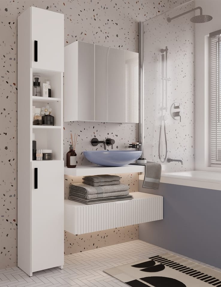 - Idealna do małych i średnich łazienek, doskonale zagospodarowuje przestrzeń nad umywalką.