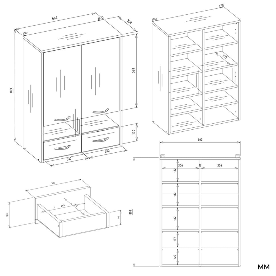 - Konstrukcja mebla: płyta laminowana 16 mm